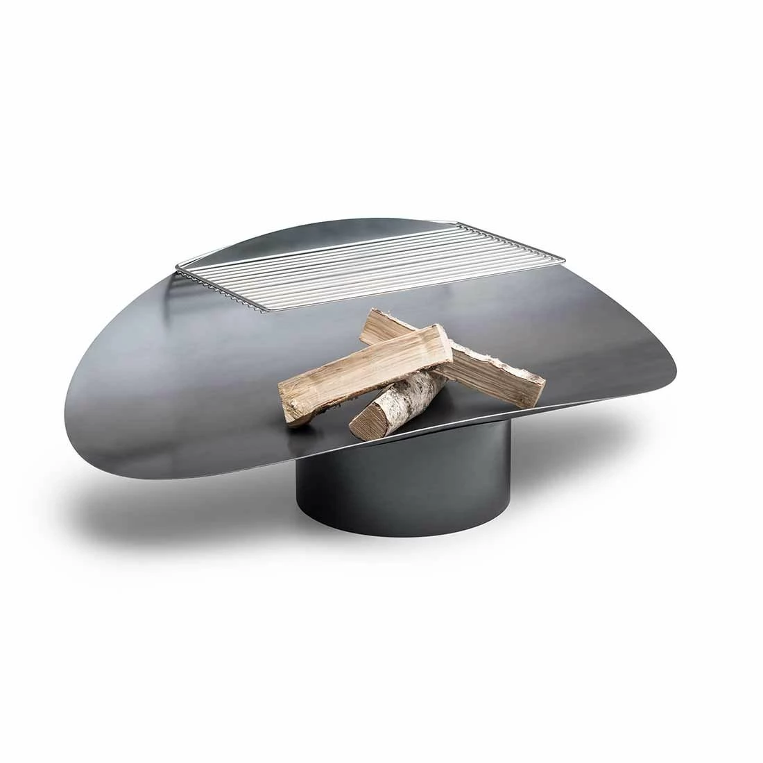 Durch den massiven Edelstahl Grillrost kann mit ELLIPSE auch gegrillt werden. Dabei kann die Hitze erhöht werden indem mehr Glut unter den Grillrost platziert bzw. reduziert indem Glut zur Seite geschoben wird.