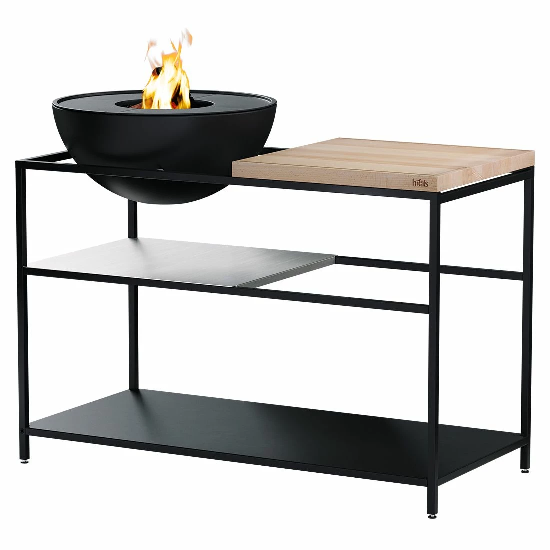 - höfats Fire Kitchen Outdoorküche mit herausnehmbarem Einlegeboden aus gebürstetem Edelstahl