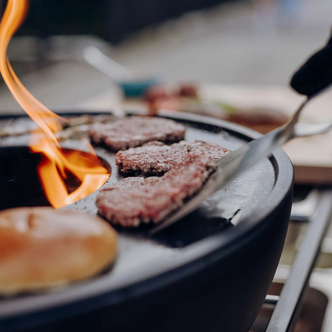 Ob Fisch, Fleisch oder Gemüse: Mit der hochwertigen höfats Fire Kitchen Outdoorküche können Sie Speisen wie ein Sternekoch zubereiten. Die durchdachte Konstruktion aus pulverbeschichtetem Stahl mit vier höhenverstellbaren Füßen lässt sich ganz flexibel an Ihre Lieblingsspots im Garten oder auf der Terrasse platzieren. Unter freiem Himmel lassen sich auf dem integrierten BOWL Plancha Grill salzige und süße Speisen zaubern. Die perfekte Arbeitshöhe von Grill und Arbeitsfläche macht die Zubereitung der Speisen zu einem entspannten Erlebnis. Die Holzarbeitsplatte ist aus gedämpftem Buchenholz gefertigt und mit einer praktischen Saftrinne ausgestattet.