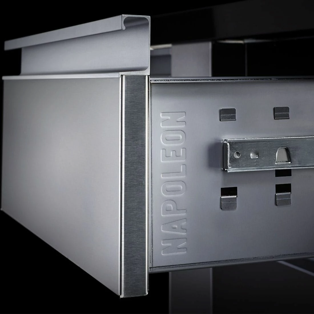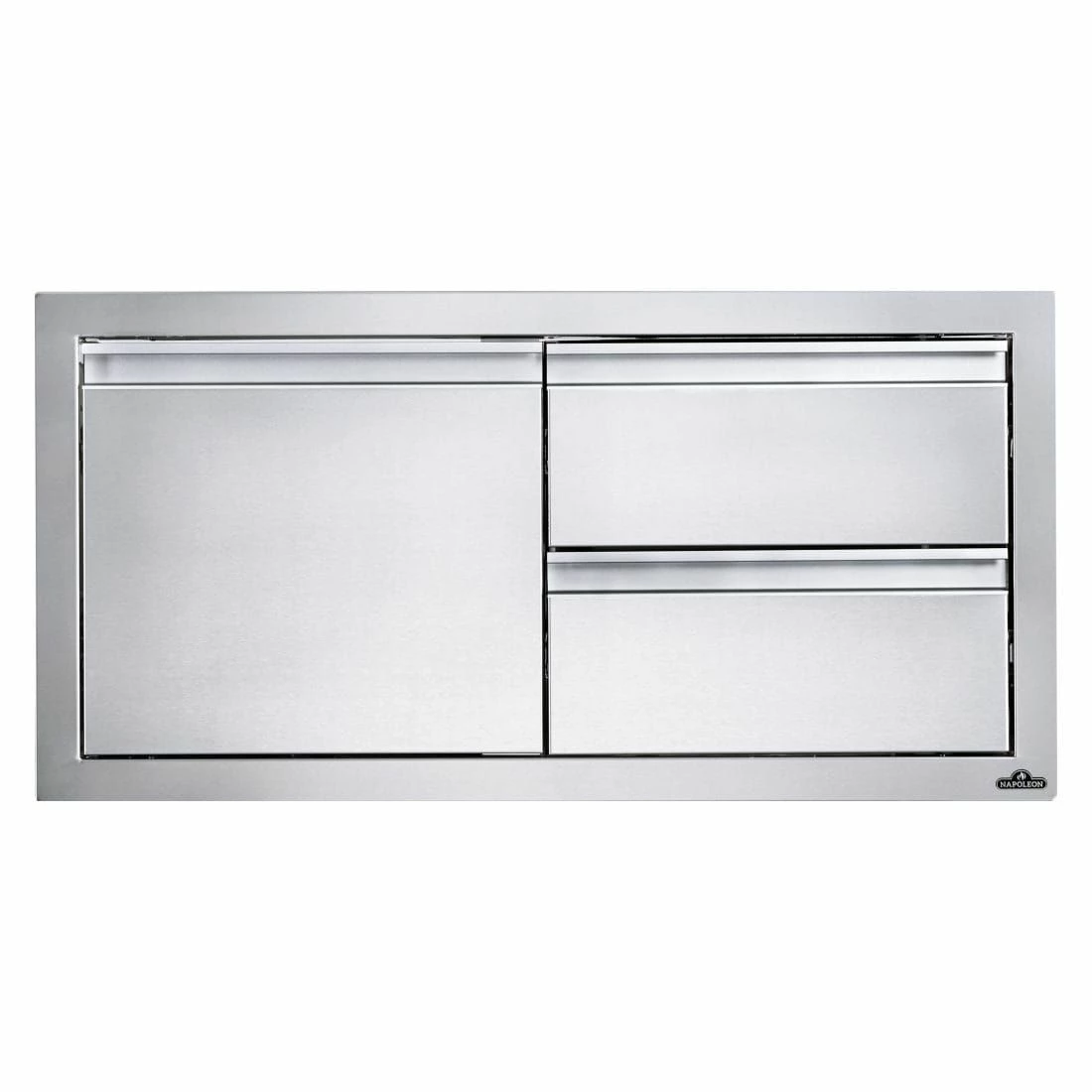 In der linken Tür ist genug Stauraum vorhanden, um auch größere Utensilien unterzubringen. In den zwei Schubladen rechts können alle Kleinigkeiten hervorragend aufbewahrt werden.
