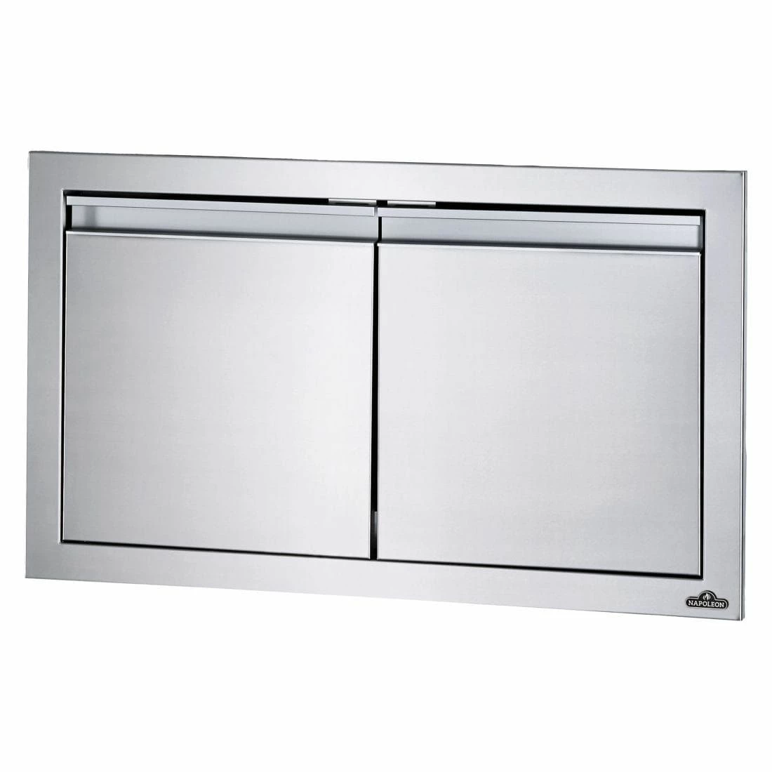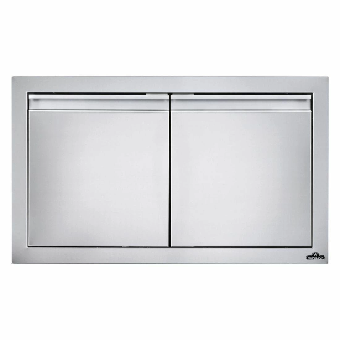 Stylische Napoleon® Einbau-Türen aus robustem Edelstahl. Die Türen sind mit einer Softclose-Funktion ausgestattet. Perfekt zum Unterstellen der Gasflasche oder anderer größerer Grillutensilien.