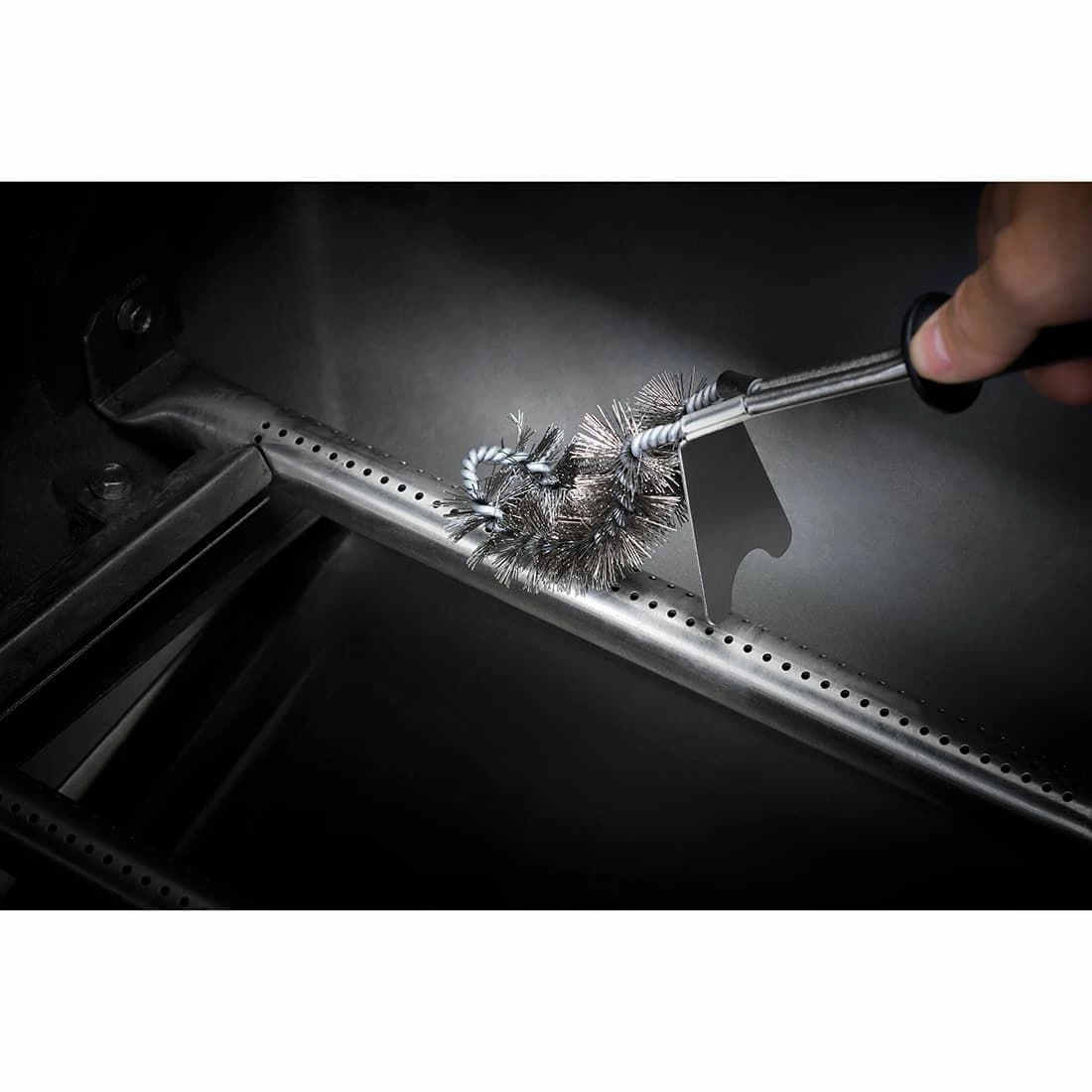 Dreiteiliges Napoleon® Reinigungsset, bestehend aus: Tube Cleaner zum Reinigen des Brenners von innen – bei Ablagerungen oder Spinnenbefall (67 cm x 2,9 cm). Brenner-Bürste für die Außenreinigung der Brenner. Mit stabilen Edelstahlborsten und rund geformtem Schaber für eine gründliche Reinigung (38 cm x 6 cm x 6,9cm). Schaber für die Grillkammer aus Kunststoff mit herausnehmbarem Dorn für die Brennerdüse (29,5 cm x 7 cm x 3,2 cm).