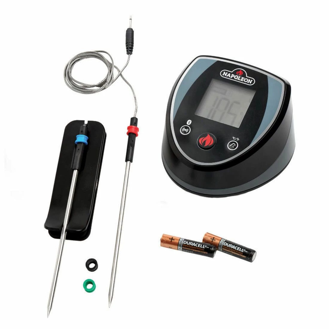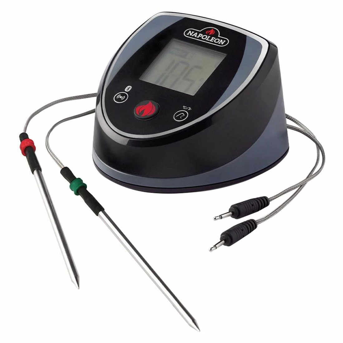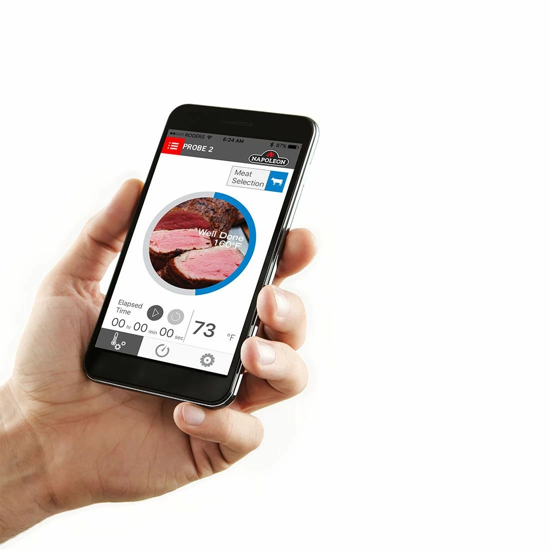 Grillen Sie das perfekte Steak oder den perfekten Braten noch einfacher mit dem Napoleon® ACCU-PROBE™ Bluetooth Thermometer. Das Thermometer funktioniert mit iPhone und Android Handys und gibt ein Signal, wenn das Grillgut die perfekte Temperatur erreicht hat. Die magnetische Befestigungsmöglichkeit sorgt dafür, dass das Thermometer einen sicheren Halt hat. Mit der anpassungsfähigen Programmauswahl grillen Sie Steaks und Braten genauso wie Sie möchten. Das Napoleon® ACCU-PROBE™ Bluetooth Thermometer wird mit zwei Temperaturfühlern (Sonden) geliefert, lässt sich aber mit bis zu vier Sonden verwenden (separat erhältlich).