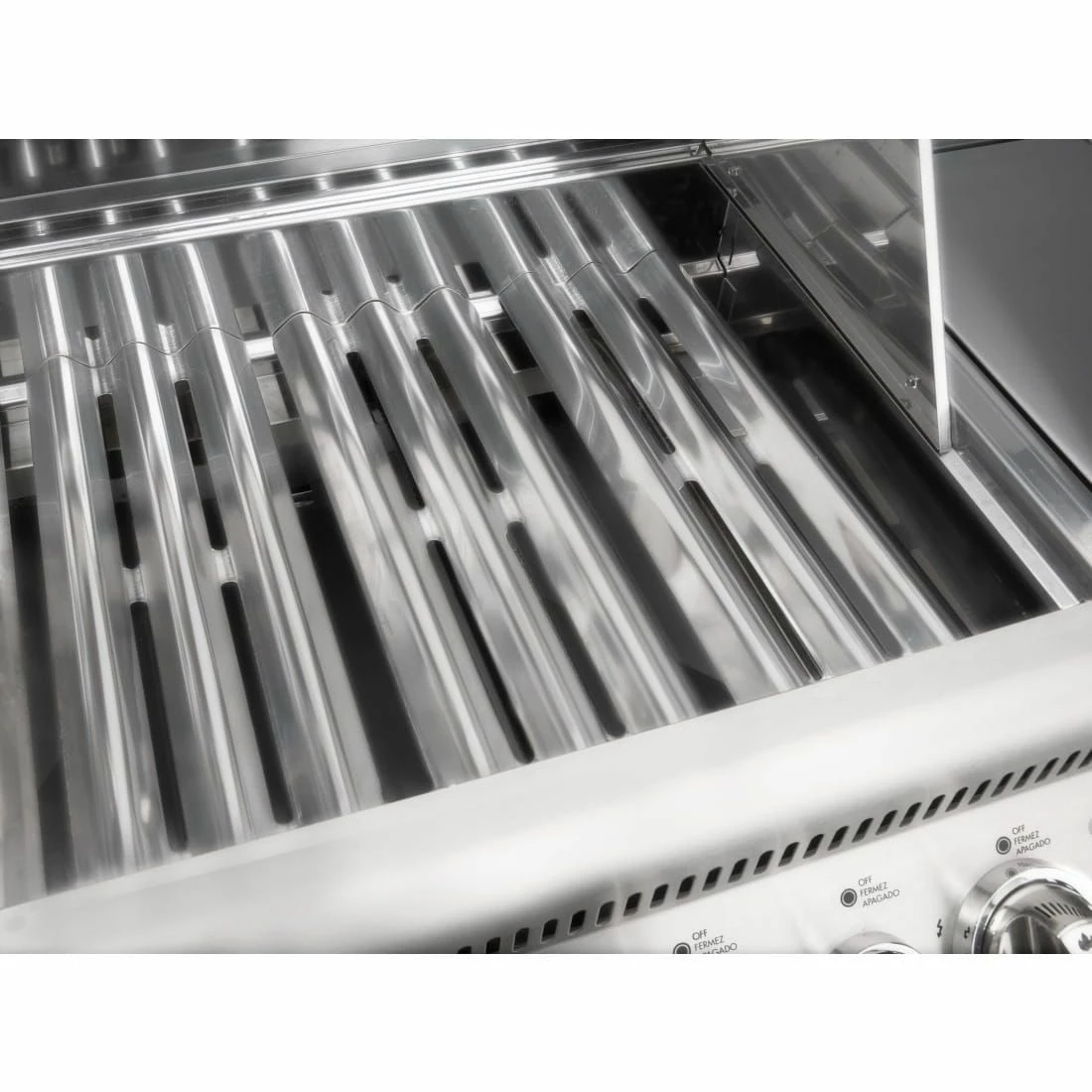 Doch auch auf der einladenden Grillfläche mit WAVE™ Edelstahl-Grillrosten und am verchromten Warmhalterost ist Platz für ganze Grillmenüs.