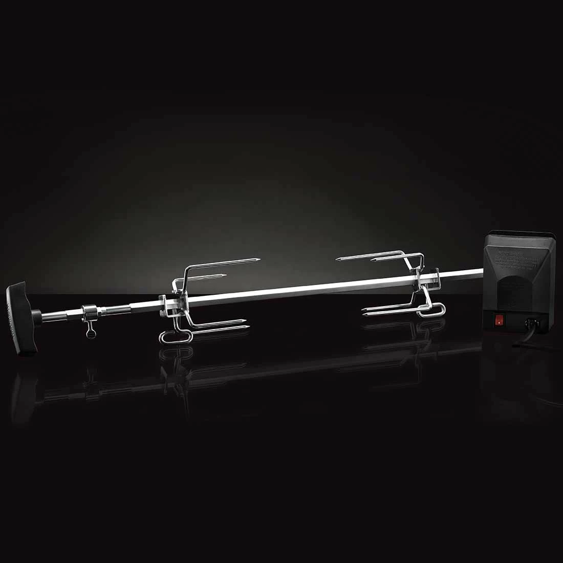 Napoleon® Drehspieß-Set in Heavy Duty Ausführung: Mit zwei Edelstahl-Fleischklammern, Edelstahl-Drehspieß (vierkantig) und Motor mit schwarzem Kunststoffgehäuse. Passend für die Freestyle® Serie.