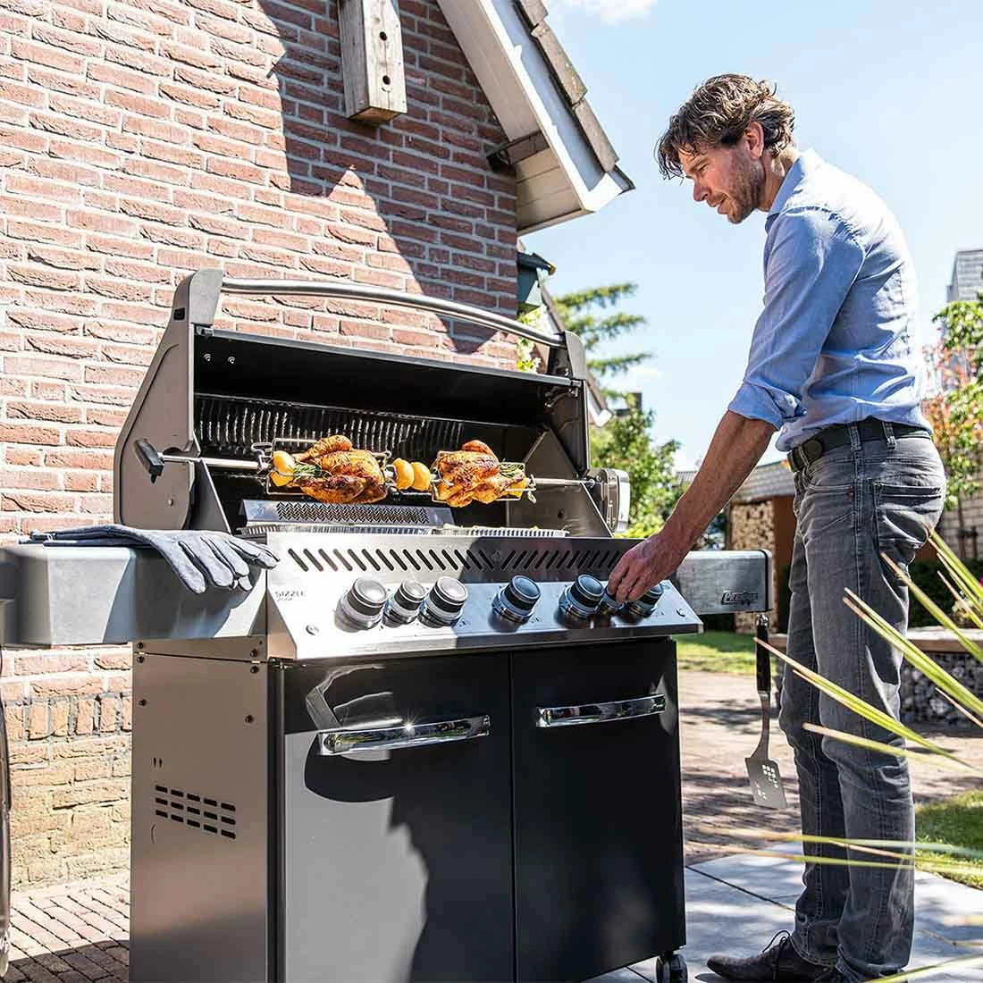 Mit 5 Hauptbrennern, einem Infrarot-Heckbrenner und dem Infrarot SIZZLE ZONE™ Seitenbrenner für perfekte Steaks ermöglicht er vielfältigste Formen der Zubereitung. Auf der großzügigen Hauptgrillfläche plus Warmhalterost lassen sich Familie, Freunde, Nachbarn und der Fußballclub verköstigen.