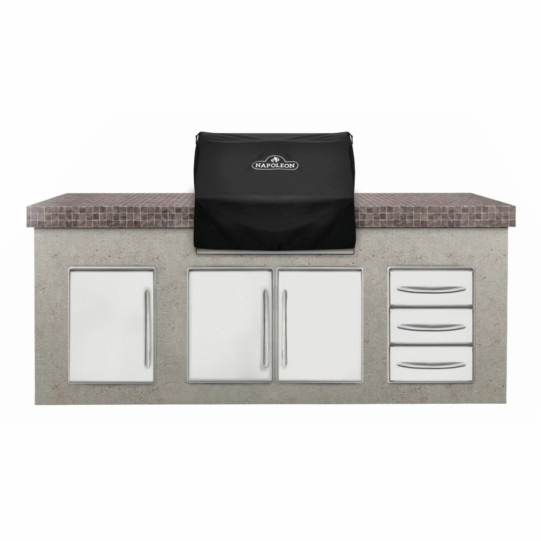 Napoleon® Haube mit langlebigem, wasserabweisenden Gewebe. Bricht nicht und bietet das ganze Jahr hindurch Vollwetterschutz. Ausbleichen wird durch einen speziellen UV-Schutz vermieden. Verstellbare Riemen mit Schnallen an den Seiten für eine genaue Passform. Vermeidung von Schimmel und Aufblasen durch Belüftungsöffnungen. Passend für den Napoleon® BILEX 485 Einbaugrill.