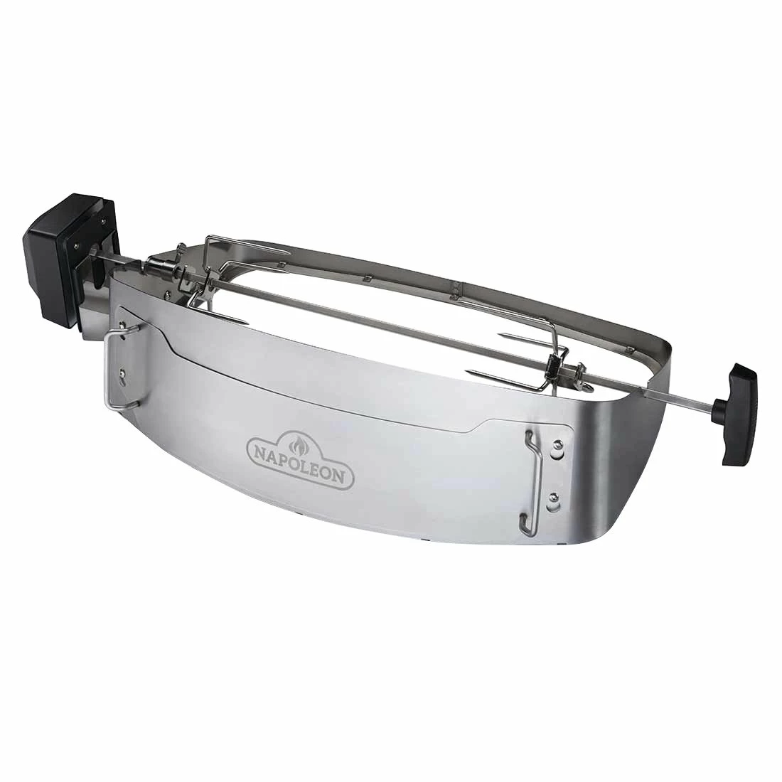 Napoleon® Drehspieß-Set in Heavy Duty Ausführung mit einer Erhöhung aus Edelstahl für die TravelQ Grills. Mit diesem Drehspieß-Set zaubern sie Rotisserie-Gerichte auf Ihrem kleinen Begleiter.