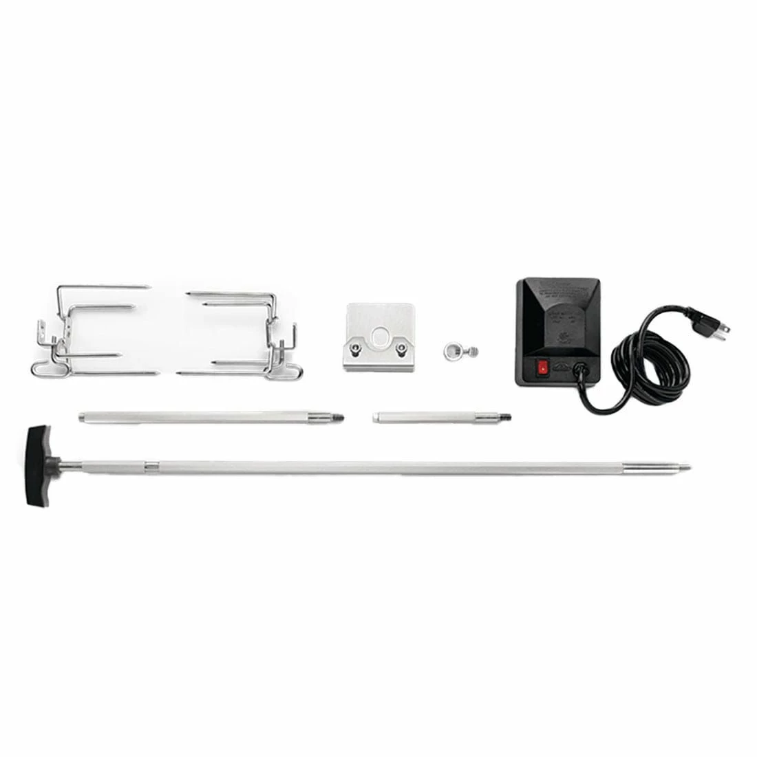 Napoleon® Drehspieß-Set in Heavy Duty Ausführung: Mit zwei Edelstahl-Fleischklammern, Edelstahl-Drehspieß (vierkantig) und Motor mit schwarzem Kunststoffgehäuse. Passend für Rogue® Serie