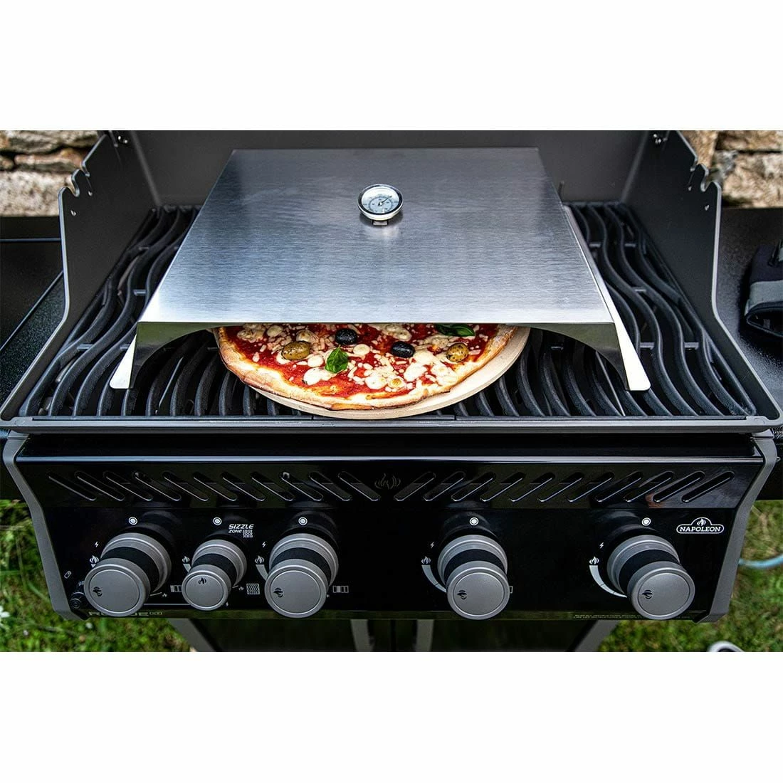 Massiver Napoleon® Pizza-Aufsatz für die perfekte Oberhitze über dem Pizza-Stein. Dank diesem Zubehör gelingt Ihnen die ultimative Pizza auf dem Napoleon® Grill.