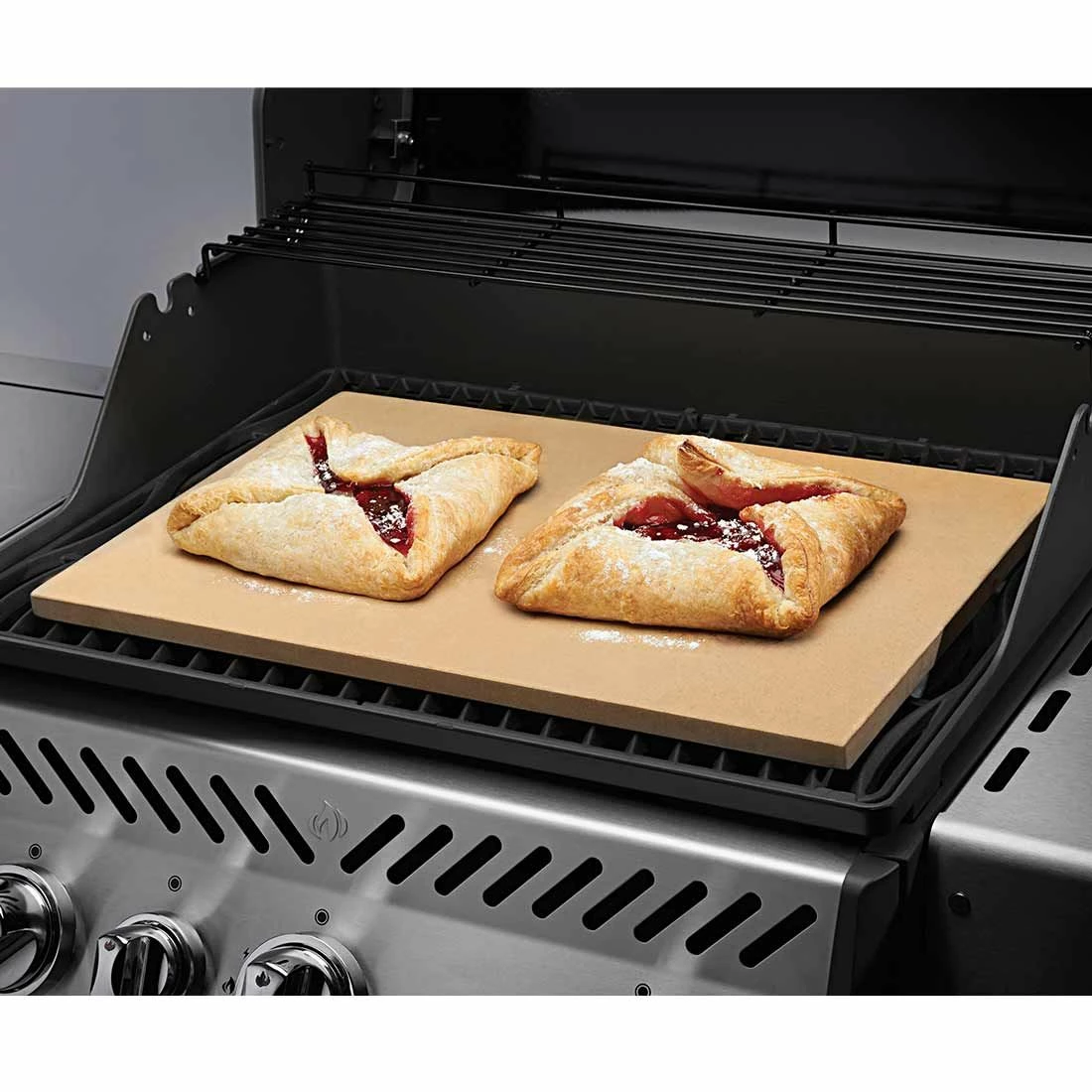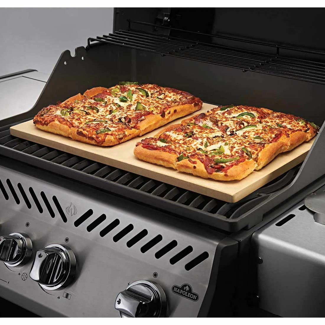 Dieser große, rechteckige Napoleon® Pizza-Stein passt u.a. perfekt zur Rogue-Serie und deckt 75% der Grillfläche ab. Natürlich passt er auch in größere Grillmodelle und kann zudem in Backöfen verwendet werden. Aus Kordierit-Material (54 cm x 34,4 cm x 1,8 cm).