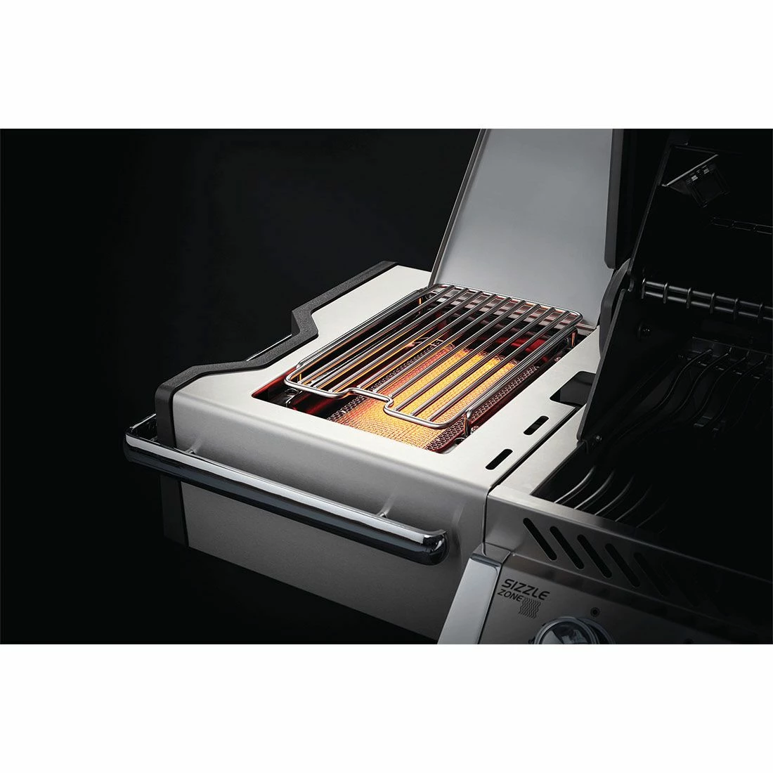 Steaks, Braten, Drehspieß (im Lieferumfang enthalten) und herkömmliche Grillgerichte finden bei 25,7 kW die jeweils optimale Grillzone: Vier Edelstahl-Rohrbrenner, einen Edelstahl-Infrarot-Heckbrenner und die innovative Infrarot SIZZLE ZONE™ mit höhenverstellbarem Edelstahl-Grillrost.