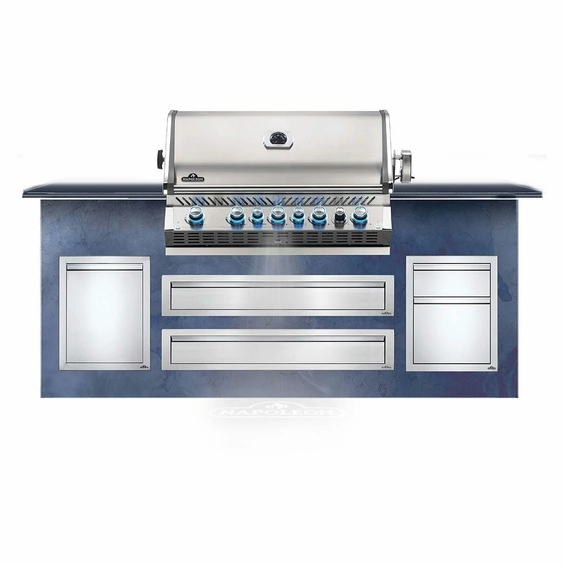 Edelstahl-Konstruktion für die Langlebigkeit, Chrom-Akzente für die Schönheit: Der Napoleon® Einbaugrillaufsatz BIPRO 665 ist eine Klasse für sich. Der Infrarot-Heckbrenner gewährleistet saftige Gerichte vom Drehspieß (im Lieferumfang enthalten) und das Grillen auf der großzügigen und beleuchteten Grillfläche macht einfach Spaß!