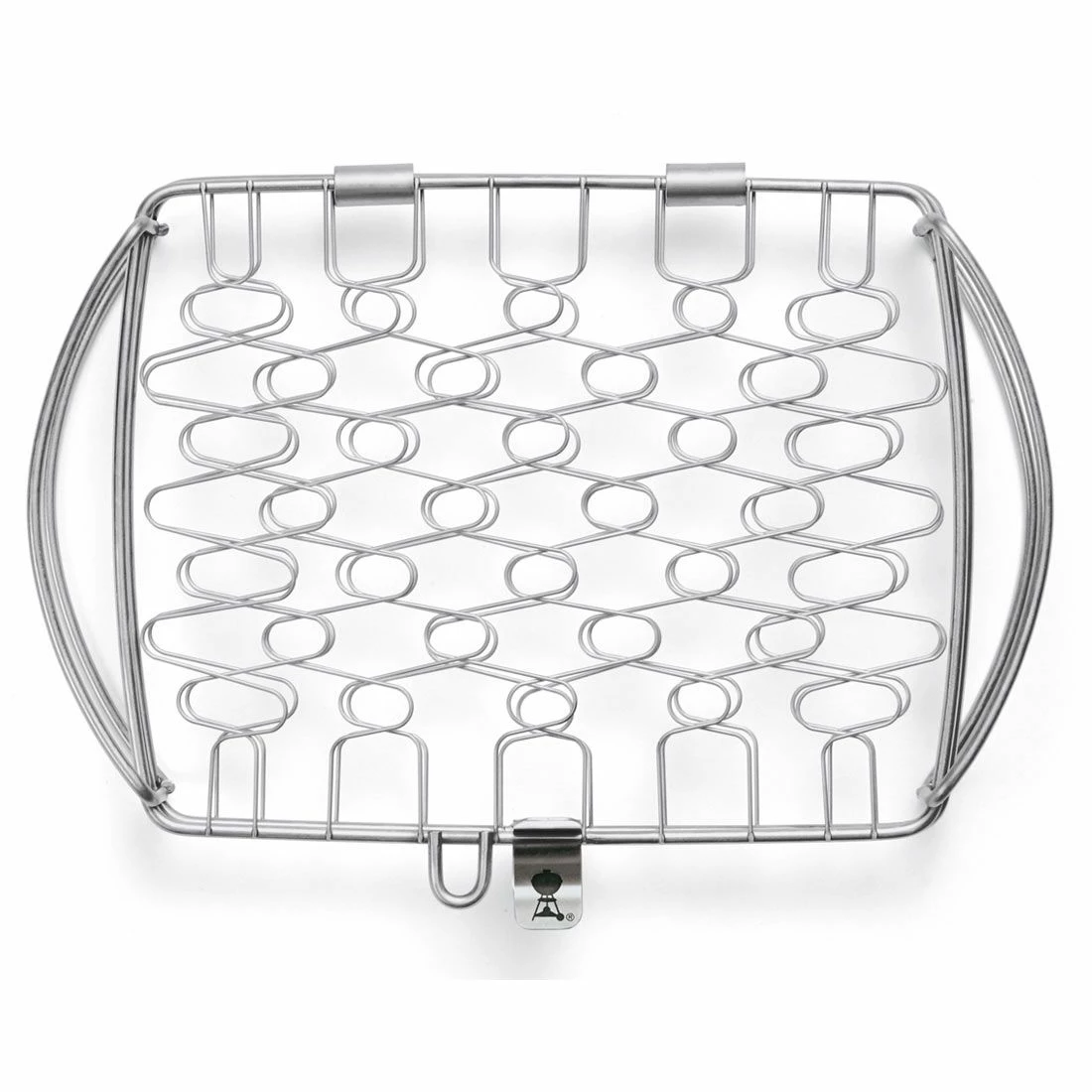 Fisch- und Gemüsehalter Edelstahl klein rechteckig – für alle Weber Gasgrill ab Q 100 und Holzkohlgrills 47 cm geeignet.