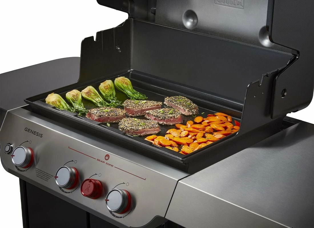 Grillen Sie, wann immer Sie wollen – mit der großen Weber Full Size Grillplatte für die Genesis 300 Serie. Sie passt perfekt zu Ihrem Genesis 300 Gasgrill,, sodass Sie die gesamte Grillfläche in Sekundenschnelle verwandeln können. Diese Grillplatte aus porzellanemailliertem Gusseisen nutzt die hervorragenden Brenner Ihres Grills, um eine gleichmäßige Hitze von Rand zu Rand zu erzeugen. Von Pfannkuchen und Eiern bis hin zu Meeresfrüchten und Gemüse: Sie haben die volle Kontrolle darüber, wie Sie Teller für Teller restaurantwürdige Gerichte zubereiten – vom ersten bis zum letzten Wenden. Und das Fettauffangsystem ist so konzipiert, dass es mit Ihrem Grill kompatibel ist, Kleckern verhindert und Fett effektiv auffängt, um Verschmutzung zu reduzieren.