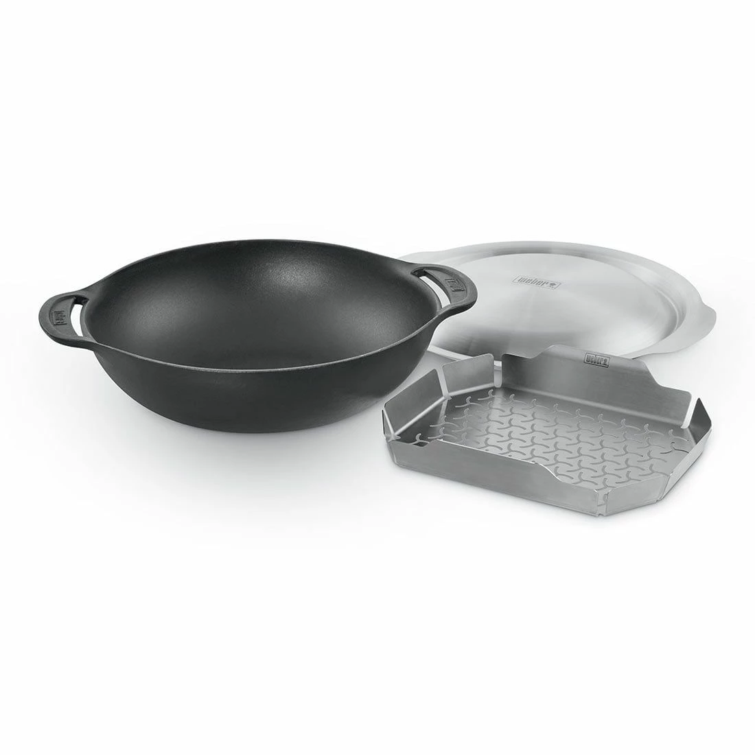 Der praktische Weber® Wok-Einsatz bietet das Beste aus zwei Welten: einen leichten Wok für Pfannengerichte und einen Dünsteinsatz mit Deckel, um Fisch und köstliches Gemüse zu dünsten.