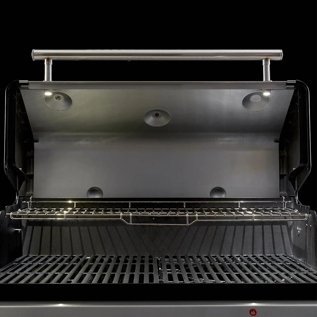 - Lichtpaket: Grillflächenbeleuchtung mit Bewegungssensor und beleuchteten Bedienknöpfen: optimal fürs Grillen im Dunkeln