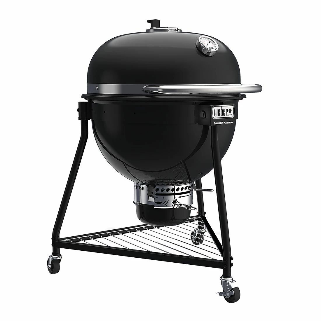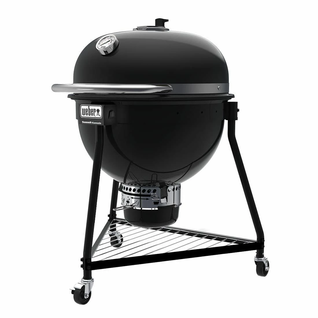Grenzenlose Grillmöglichkeiten mit dem Weber Summit Kamado E6 Holzkohlegrill! Der Grill ist durch den Deckellüfter „Rapidfire“ nicht nur besonders schnell heiß, dank der Doppelwandigen Isolierung sind auch präzise und schnelle Temperaturänderungen kein Problem. Außerdem ist mit dem Grill nicht nur klassisches Anbraten, sondern auch Räuchern möglich, da sich der Holzkohlerost verstellen lässt. Wer zudem noch auf eine besonders große Grillfläche angewiesen ist, wird hier mit einem Durchmesser von 61 cm sicher besonders glücklich. Abgerundet wird das Grillerlebnis noch durch ein praktisches Bodengitter und Lenkrollen zum einfachen Verschieben des Grills.