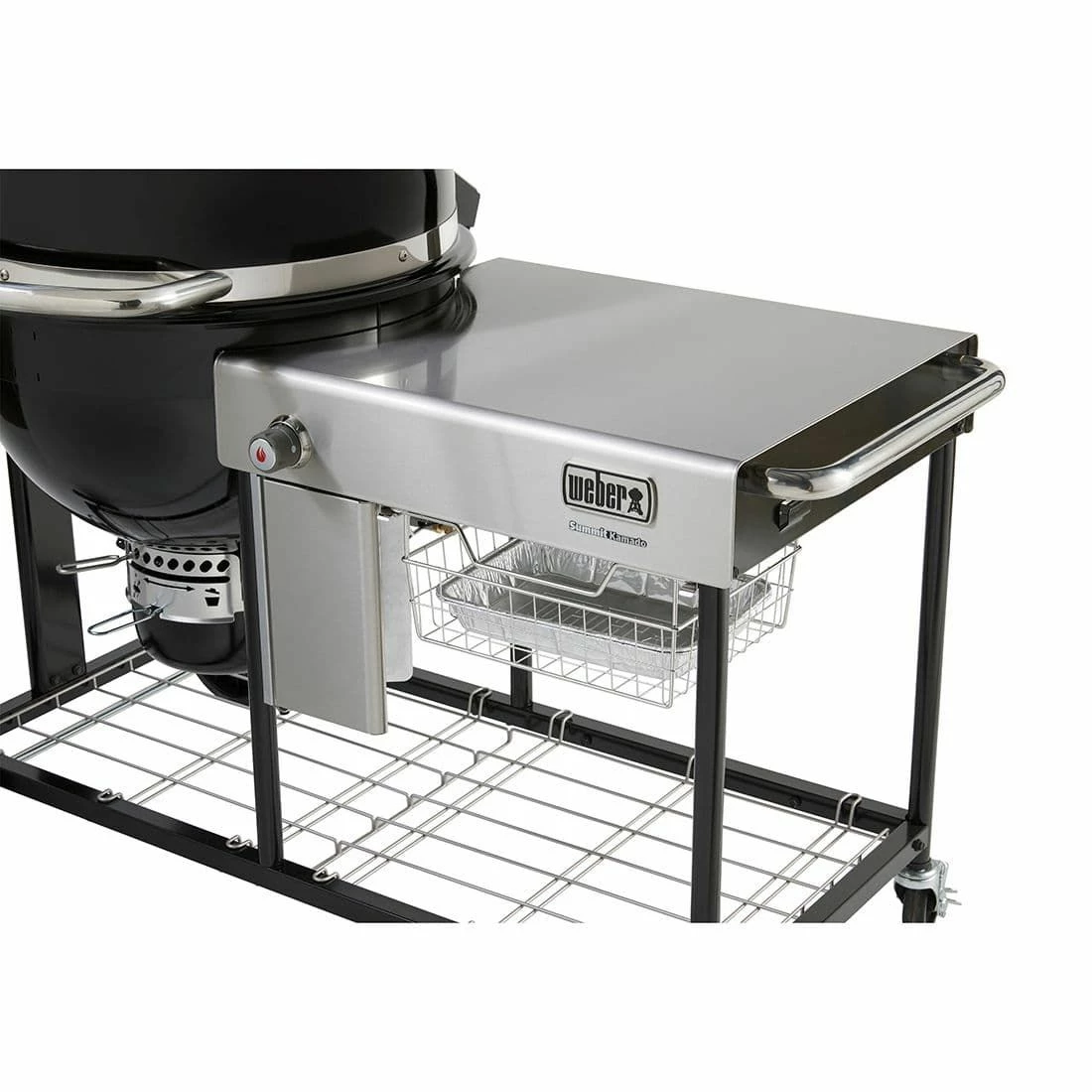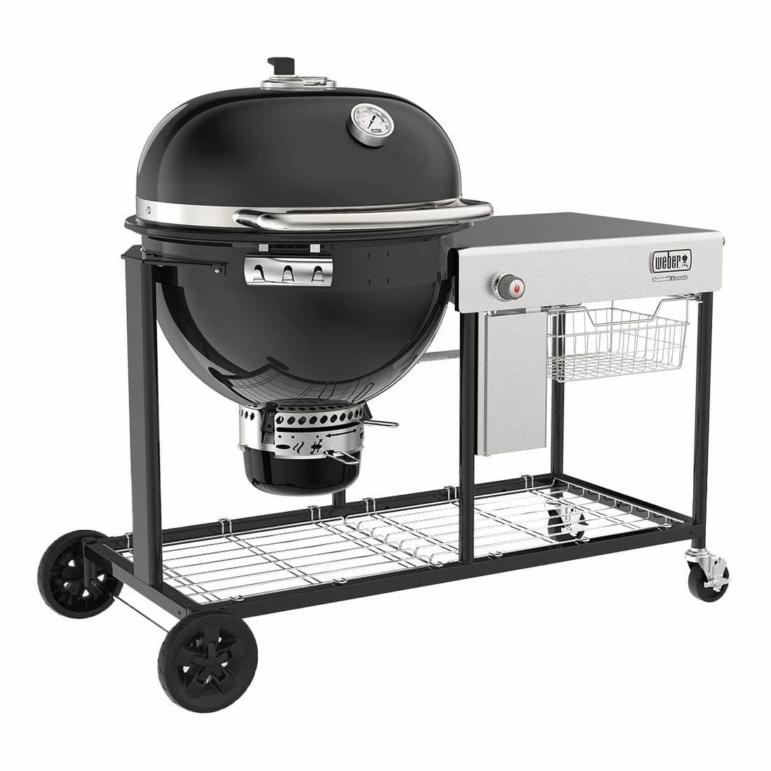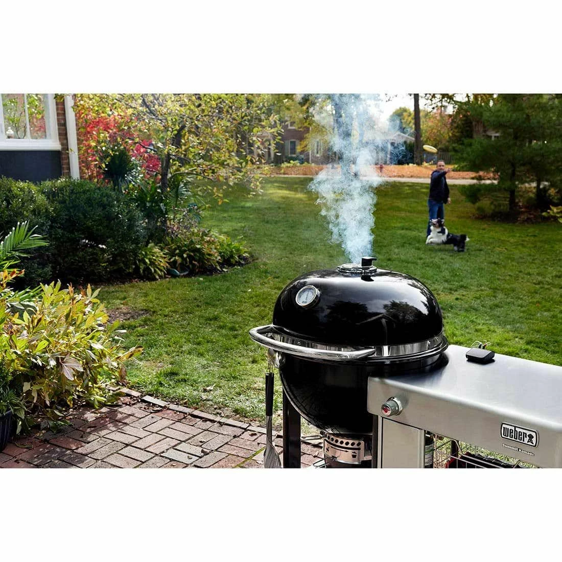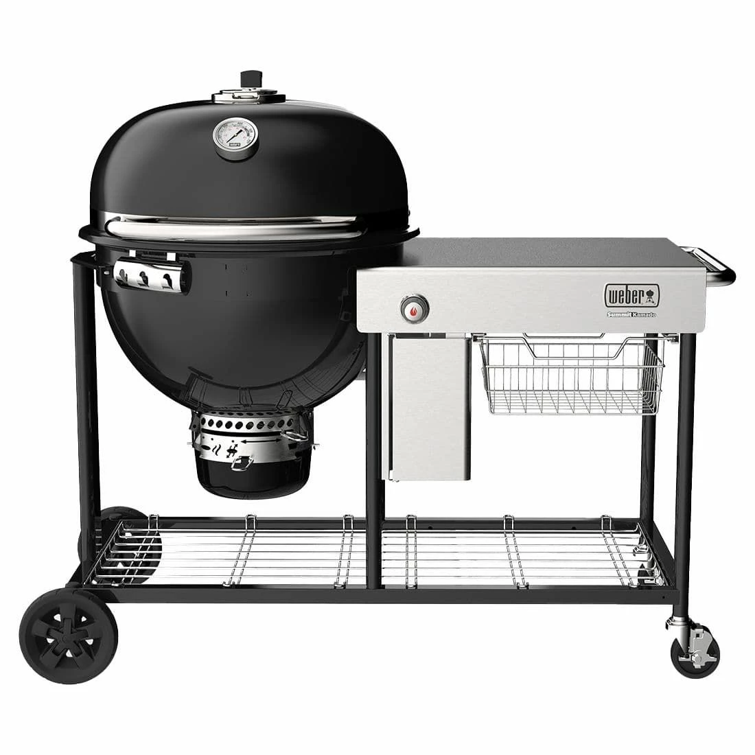 Grenzenlose Grillmöglichkeiten mit dem Weber Summit Kamado S6 Holzkohlegrill! Der Grill ist durch das eingebaute Snap-Jet Gas-Anzündsystem nicht nur auf Knopfdruck angefeuert, sondern auch schon in 15 Minuten grillbereit. Außerdem ist mit dem Grill nicht nur klassisches Anbraten, sondern auch Räuchern möglich, da sich der Holzkohlerost verstellen lässt. Wer zudem noch auf eine besonders große Grillfläche angewiesen ist, wird hier mit einem Durchmesser von 61 cm sicher besonders glücklich. Abgerundet wird das Grillerlebnis noch durch den äußerst praktischen verschiebbaren Wagen mit zusätzlicher Arbeitsfläche.